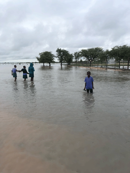 According to Petrus Nangolo Iilonga principal John Sheyavali, his school is surrounded by water, and teachers and learners have to wade through the water to access the school.